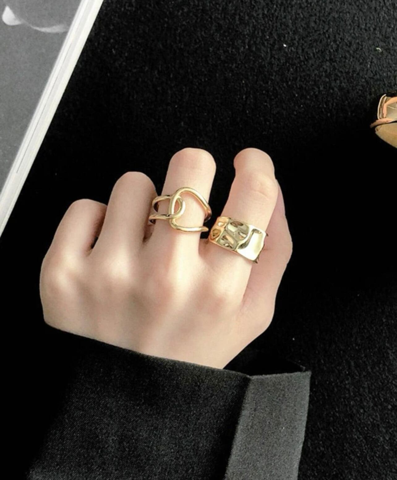 シルバー925 ゴールド リング レディース ファッション ユニセックス お洒落 ゴツめ 2個セット