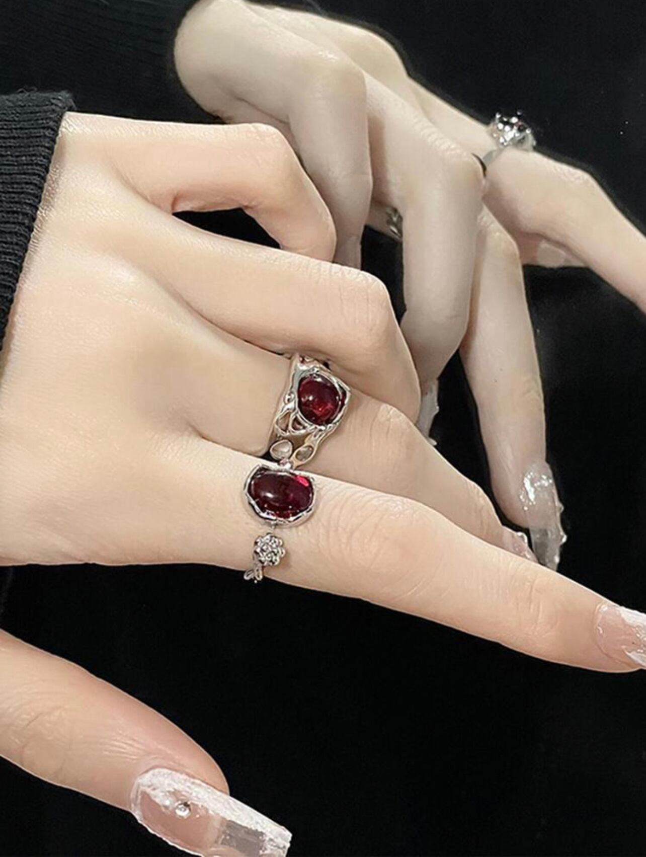 レディース シルバー リング 2個セット赤色ストーンは、おしゃれアンティークゴシックな雰囲気が魅力のアクセサリーです。シルバー素材ならではの上品な輝きと、赤色ストーンが華やかさを演出します。2個セットなので、一つだけでもおしゃれな指先を演出できますし、両手につけても絶妙なバランスが楽しめます。指輪のサイズ調節も可能で、幅広い方にご利用いただけます。