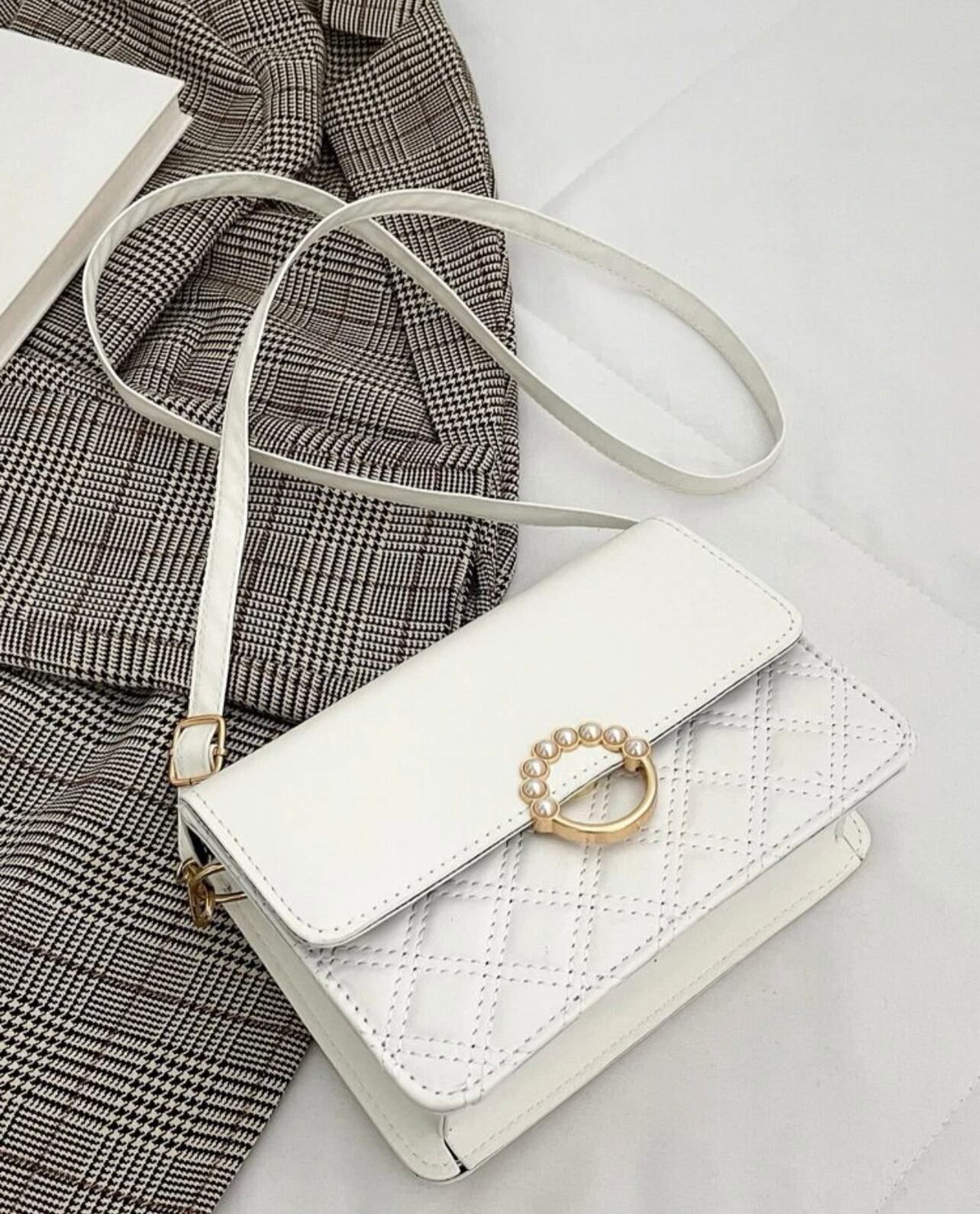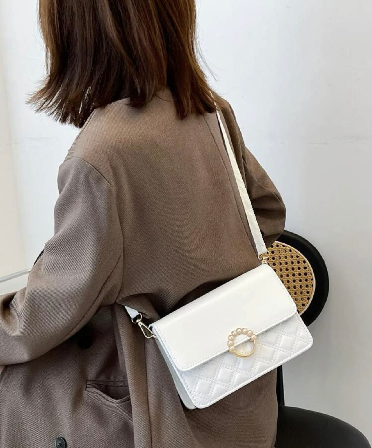 このレディース スクエア キルティング ショルダーバッグは、おしゃれで女性らしいデザインが特徴です。ホワイトのカラーは清潔感があり、コーディネートにも合わせやすいです。小ぶりなサイズ感ながらも実用的で、必要最低限の荷物を収納できます。長めのショルダーストラップ付きなので、肩に掛けて楽に持ち運べます。お出かけやデートにぴったりのバッグです!